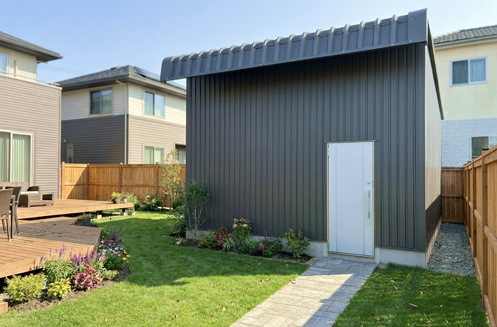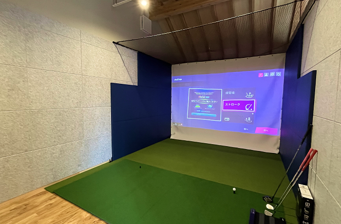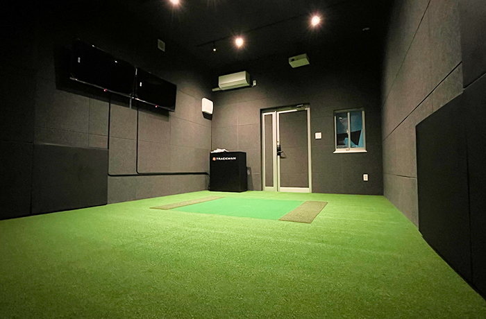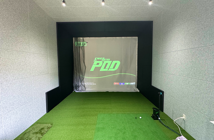 ゴルフスイングに十分なスペースのあるガレージ型躯体です。